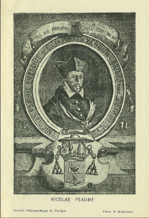 Fils d’un laboureur du village de Chaumont sur Aire, Nicolas Psaume étudie dans la science de théologie et des Saints Canons.