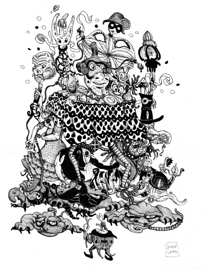Ils se définissent comme suit: "couple d'artistes autodidactes, penchés au creuset de notre imaginaire, tels de deux alchimistes jubilatoires, nous transmutons la réalité en illusion à moins que l'illusion ne soit réelle! Nos deux mains gauches, insatiables, se moquant des règles architecturales ou sculpturales, courent ou plutôt dansent sur le papier en quête d'une fragile bulle onirique. Bref, donnez-nous un trait, un mot, et nous en ferons un univers fantasmagorique!"
